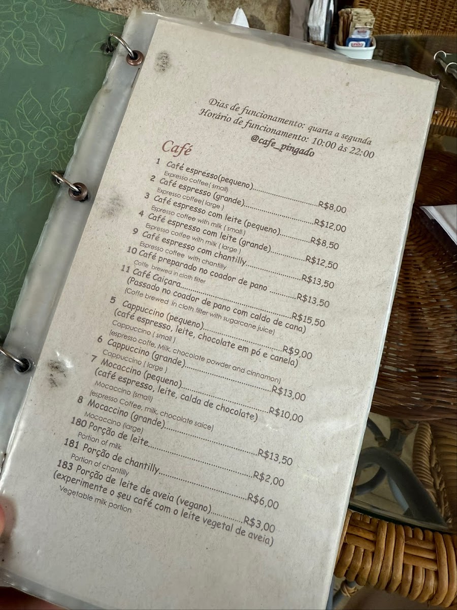From my own visit, I found the service to be as delightful as the food and drinks themselves. The staff's politeness combined with the café's inviting atmosphere ensure that every visit feels special. Whether you're a coffee aficionado or simply looking for a warm place to unwind, Café Pingado stands as a beacon of Brazillian hospitality and flavor. Don’t miss out on this gem during your time in Paraty!